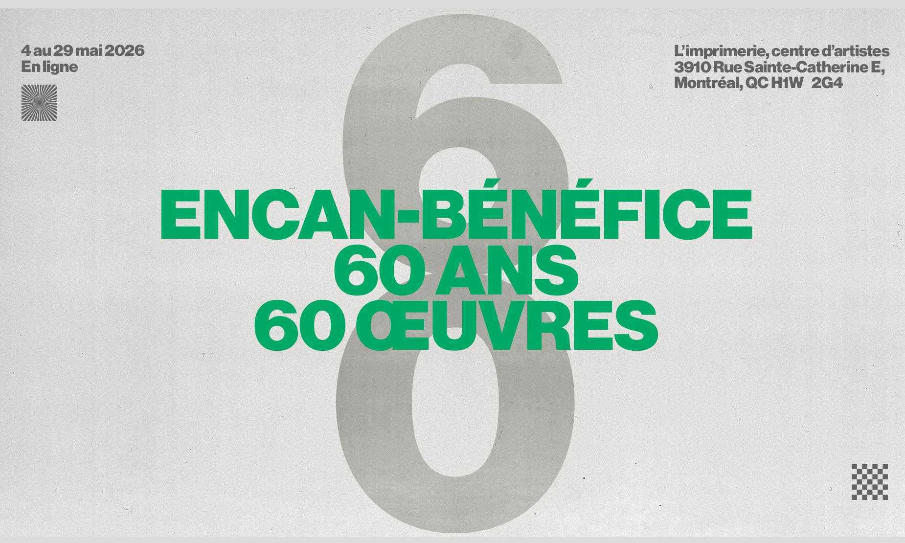 Dans le cadre de son 60e anniversaire, L’imprimerie, centre d’artistes présente l’encan-bénéfice « 60 ans, 60 œuvres ». Cet événement met en circulation une sélection de 60 œuvres issues de ses archives, témoignant de six décennies de création en arts imprimés et photographiques, de 1966 à 2026.