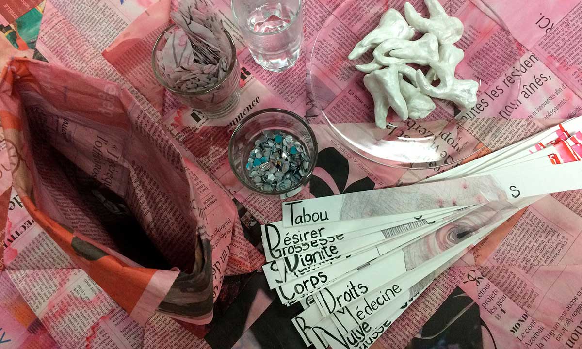 Travaillant à partir d’une position féministe, avec un intérêt marqué pour la santé – intime, publique, sociale et politique – elle crée des œuvres, souvent hybrides, qui s’élaborent par une pratique multidisciplinaire à travers l’installation, le dessin, la vidéo et la performance. Le corps hybride, les multiples représentations du corps – et celui de la femme en particulier – sont des thèmes récurrents dans sa recherche, inspirée par l’histoire de l’art, l’histoire de la médecine, des sciences et aussi par l’actualité. Par un travail en dialogue avec des lieux, des collections et des objets, des communautés et des gens, son travail tend à révéler des cohabitations improbables en proposant la transformation, à la fois poétique et politique, d’un espace partagé.