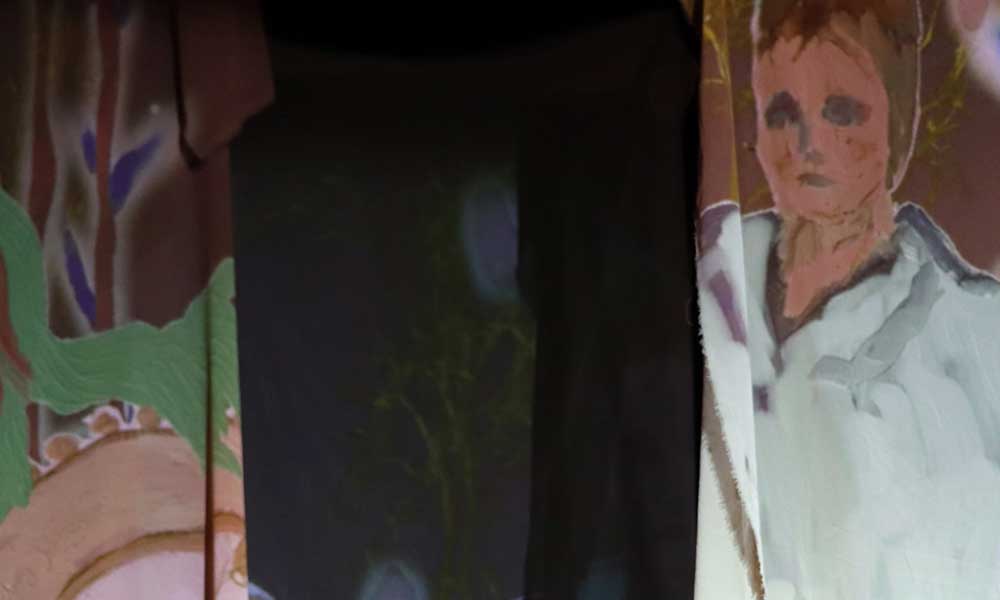 Échos rassemble des peintures, des arts d’impression et une installation audio-visuelle immersive qui explore le folklore et le fantastique—un amalgame d’histoires et d’univers, relatés par des voix spectrales qui voyagent à travers les générations.