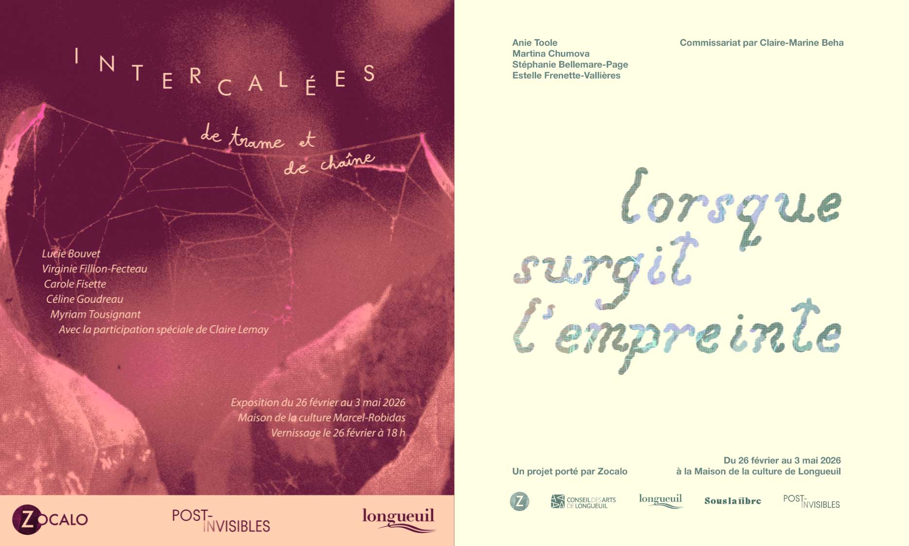 Zocalo a le plaisir de vous convier au double vernissage des expositions Intercalées et Lorsque surgit l’empreinte.