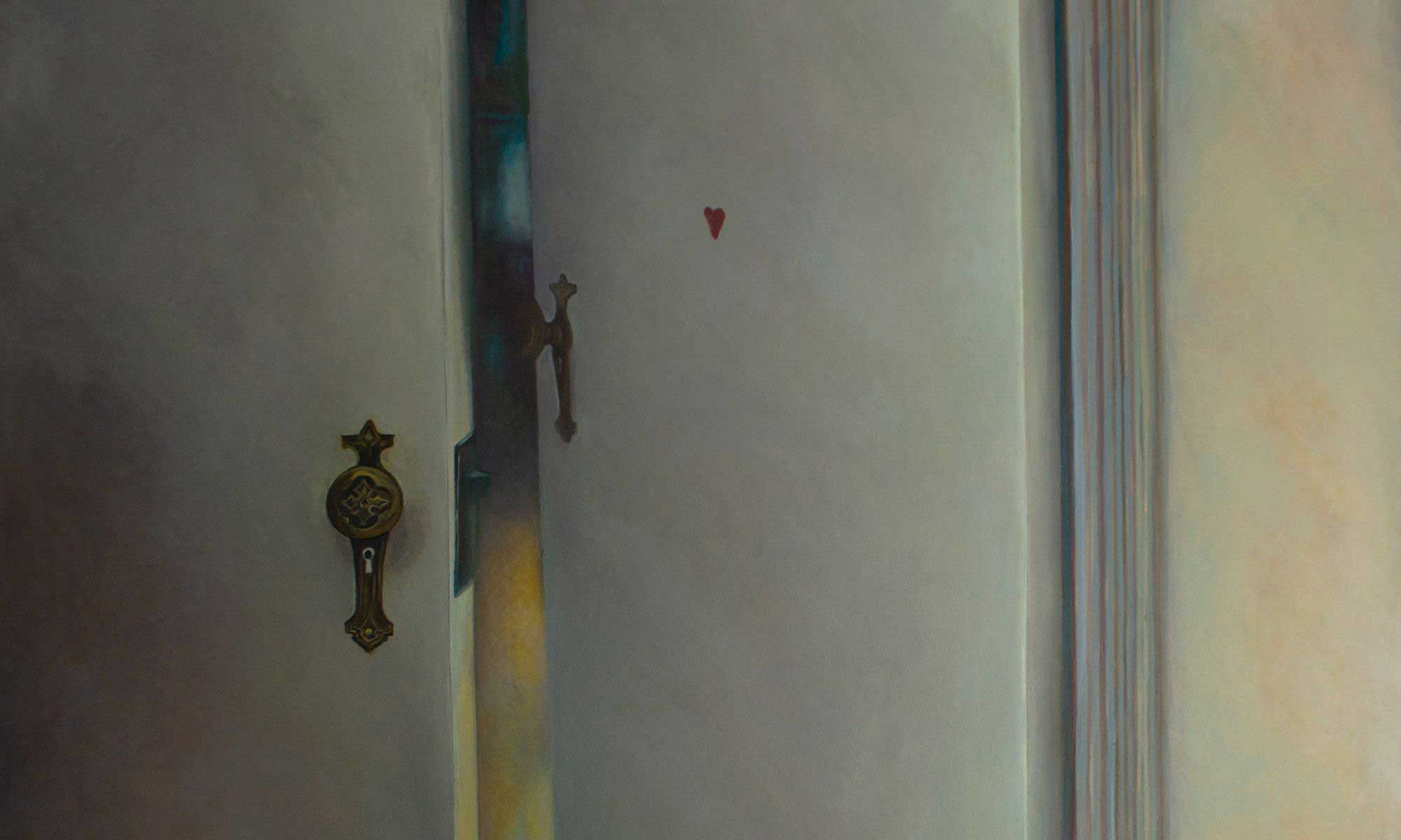 Détail de l'œuvre de l’artiste Maryam Izadifard : Before Innocence Broke, 2025, huile sur toile, 180 × 125 cm