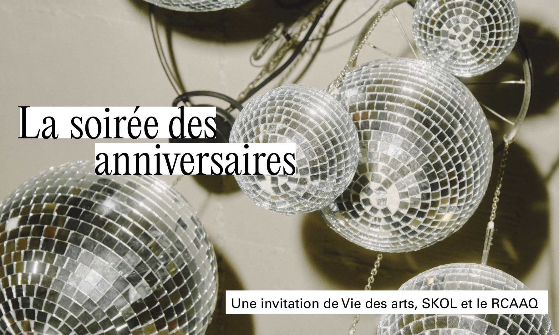 C’est dans l’esprit spontané du temps des fêtes que Vie des arts, SKOL et le RCAAQ s’unissent pour vous inviter à La soirée des anniversaires,une célébration plurielle, marquant à la fois les 70 ans de Vie des arts, les 40 ans de SKOL, les (bientôt) 40 ans du RCAAQ et tous les autres anniversaires de notre milieu.