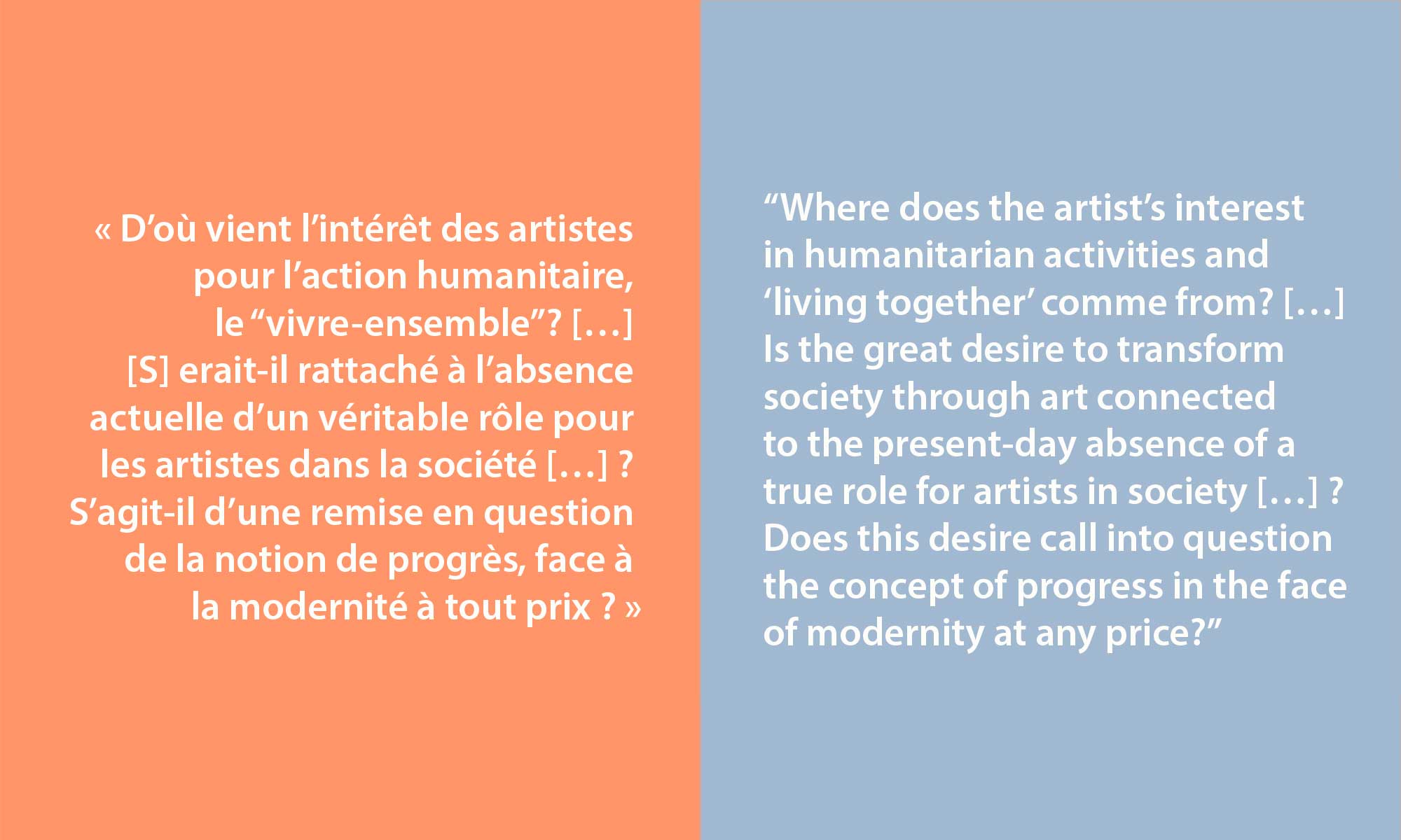 « Champs d’intérêt : infiltrer, habiter, spéculer est à la fois rétrospectif et prospectif. Ce titre, avec ses trois verbes en forme de séquence, m’apparaît aujourd’hui à l’image du cheminement même des interventions qui jalonnent l’histoire du 3e impérial. Celles-ci témoignent d’un processus original par lequel l’art actuel cible des publics précis. […] Le premier impératif, infiltrer, porte les traces de la logique des avant-gardes historiques et de la dimension prophétique de leurs interventions publiques en porte-à-faux avec le système. […] Habiter permet d’investir des zones créatrices inaccessibles autrement que par le travail dans la durée. […] spéculer sous-entend un pouvoir sur le réel, un geste où l’artiste n’est pas un témoin indépendant mais un acteur responsable. […] L’étendue du mot spéculer passe de la pensée la plus abstraite à la plus concrète, mais elle implique toujours une position de risque. » Thomas Grondin, « Le 3e impératif », Champs d’intérêt : infiltrer, habiter, spéculer [ I ], Granby, 3e impérial, centre d’essai en art actuel, 2008, p. 4 à 7.