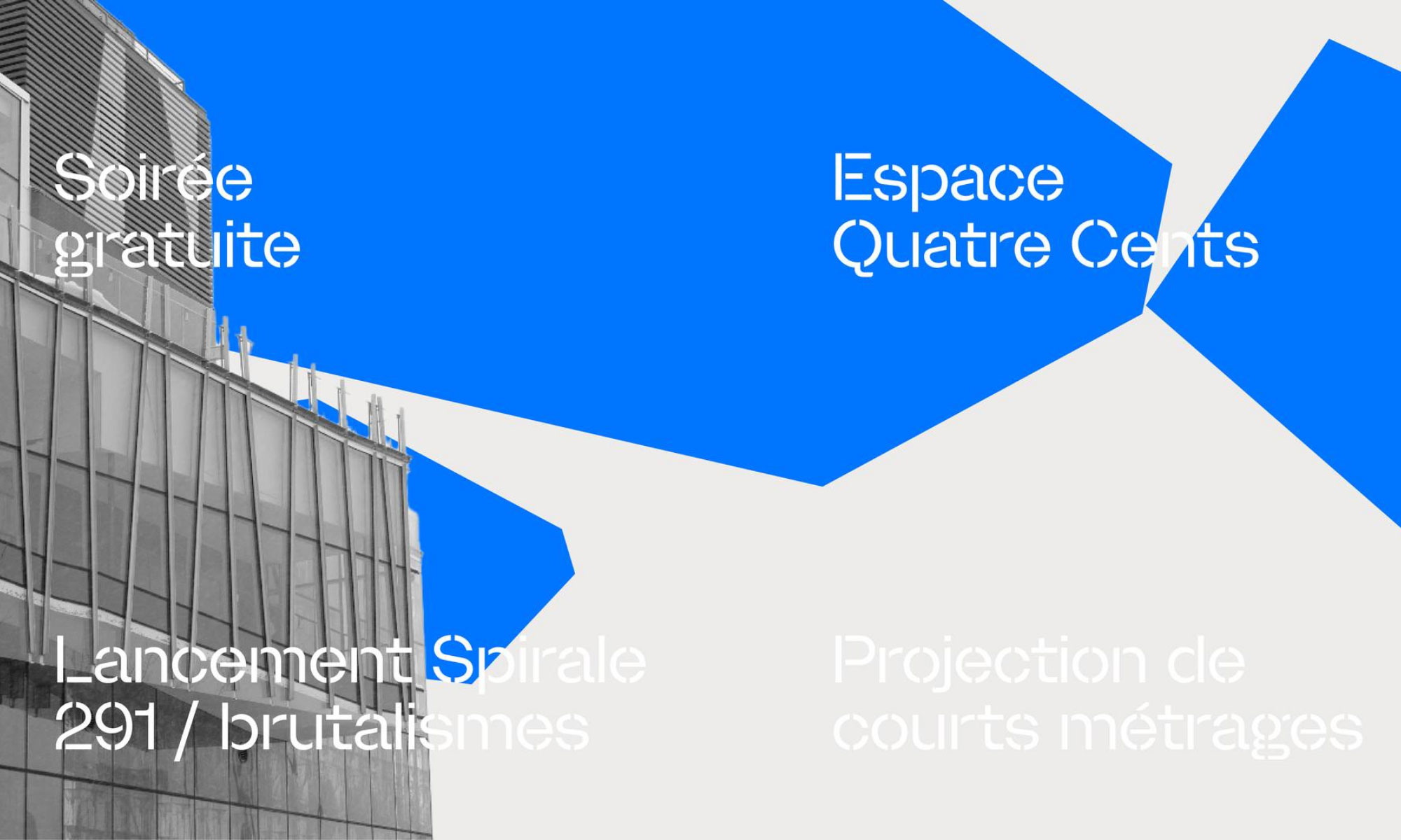 À 18 h, l’Espace Quatre Cents accueille le lancement du numéro 291 du magazine Spirale, consacré aux brutalismes.