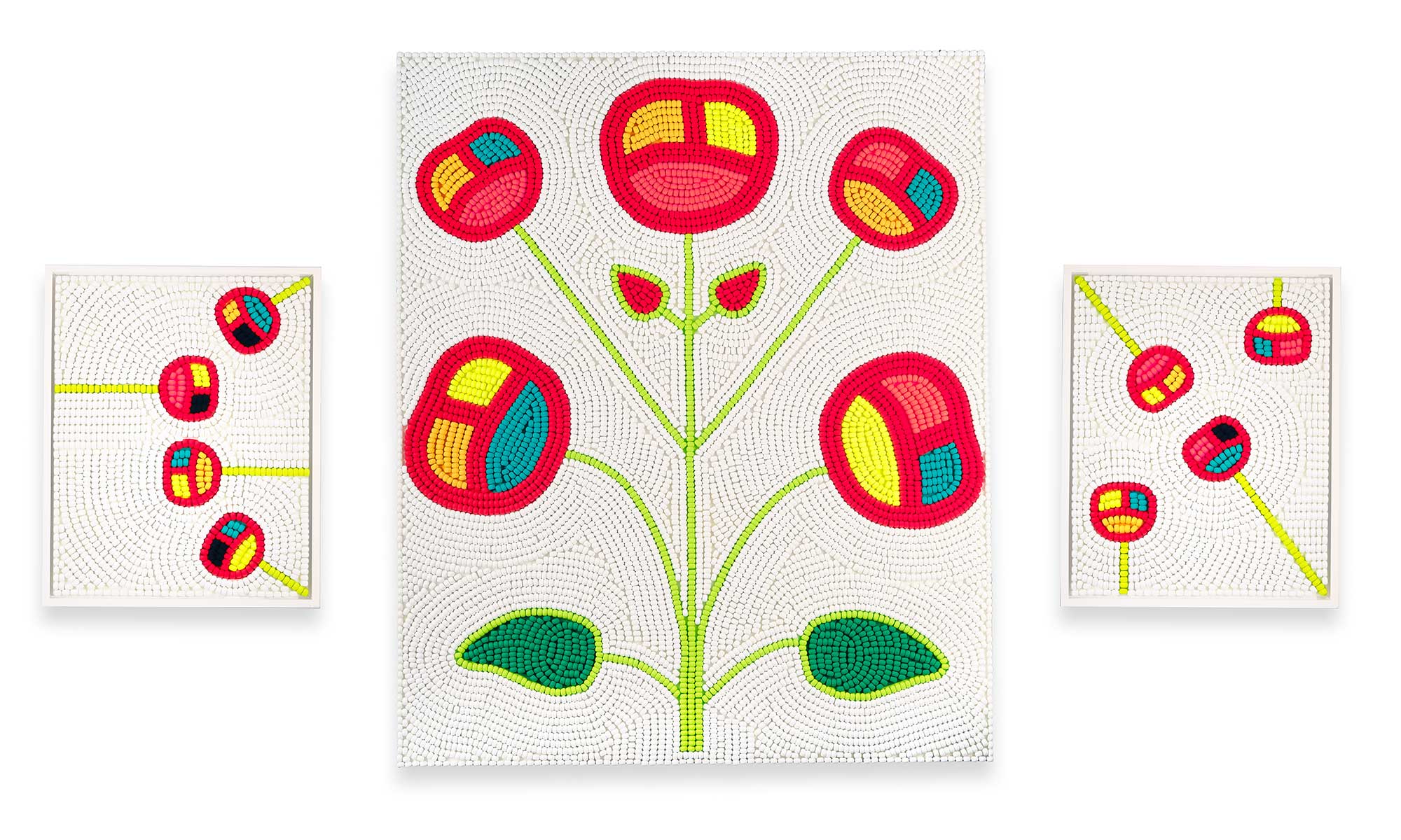 Elle met au grand jour une diversité de techniques et moyens d’expression – perlage de wampum, peinture, photographie, sculpture, vidéo et installation, entre autres – qui sont ancrés dans des courants de création distincts et véhiculés par des artistes rotinonhsión:ni, anishinaabeg, w8banakiak et wendat encore trop souvent exclu·es de l’histoire de l’art québécois, canadien et étasunien.