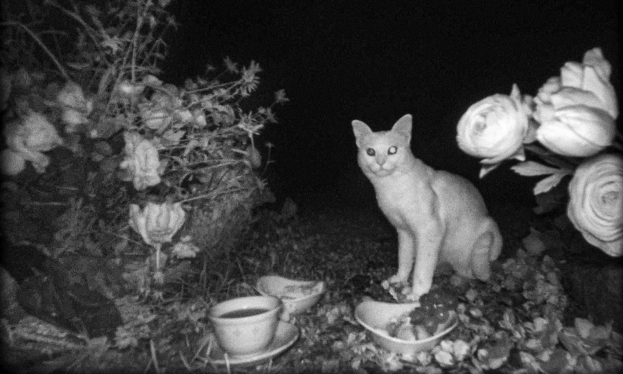 Poème visuel en noir et blanc, Un Jardin la nuit est une oeuvre d’une étrange beauté qui offre un accès privilégié à un monde secret. Des chevreuils, des ratons laveurs, des chats, un renard et un lapin apparaissent dans leur intimité naturelle tandis que la végétation poursuit son cycle de vie. D’autres scènes mettent en scène différents objets surréalistes et des personnages fantomatiques. Sans oublier une luciole animée (crée par Claude Cloutier) et quelques esprits malicieux.