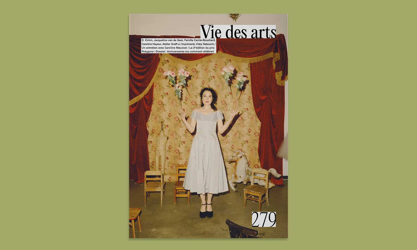 L’année 2026 marquera les 70 ans de Vie des arts. En guise de numéro d’ouverture de ces célébrations, nous nous sommes penché·e·s sur la notion même d’anniversaires : que disent vraiment ces moments d’arrêt ? S’agit-il de raviver des mémoires vivantes ou de répéter des récits inanimés ? Pour y réfléchir, nous avons invité des artistes et auteur·rice·s à partager leur travail et leurs réflexions sur les modalités et les formes discursives de l’anniversaire et de la célébration qu’ils·elles adoptent ou adaptent selon l’espace, le temps et la thématique d’un évènement ou non-évènement qui mérite d’être souligné.