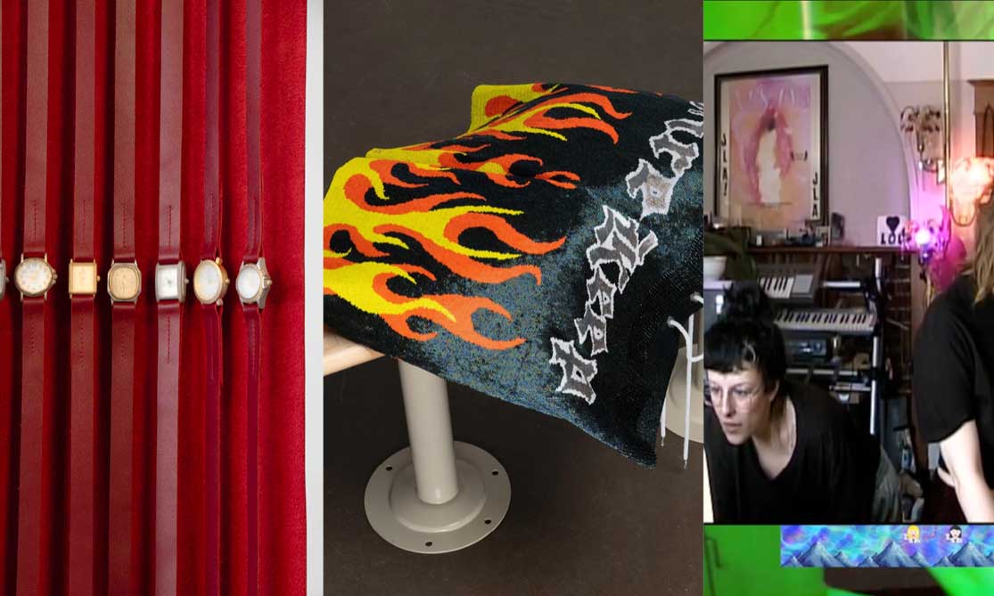Désireux de rejeter les systèmes de pouvoir, Kyle Alden Martens illustre comment certaines structures normatives, notamment celle du temps, sont vécues différemment et remises en question par la communauté queer. L’inversion des échelles et la fluidification des codes dominants se poursuit dans la disposition de l’espace. Les représentations de bottes, d’un gant, de talons hauts moulés dans le cuir tout comme d’autres accessoires tels que des ciseaux ou des montres aux bracelets longuement étirés s’imposent dans les lieux, le public se trouvant alors entouré, voire supplanté par celles-ci, mais peut-être, surtout, protégé par elles. Curieux d’observer la relation créée entre le public et l’installation, l’artiste multiplie les interprétations possibles: l’exposition montre-t-elle un processus de fabrication ou le désassemblement des installations? Au bout du compte, ce peut tout aussi bien être les deux à la fois; quelque chose qui se fait et se défait simultanément, sans chercher l’intégration à une catégorie finie, ce qui n’est pas sans rappeler les vécus queer.