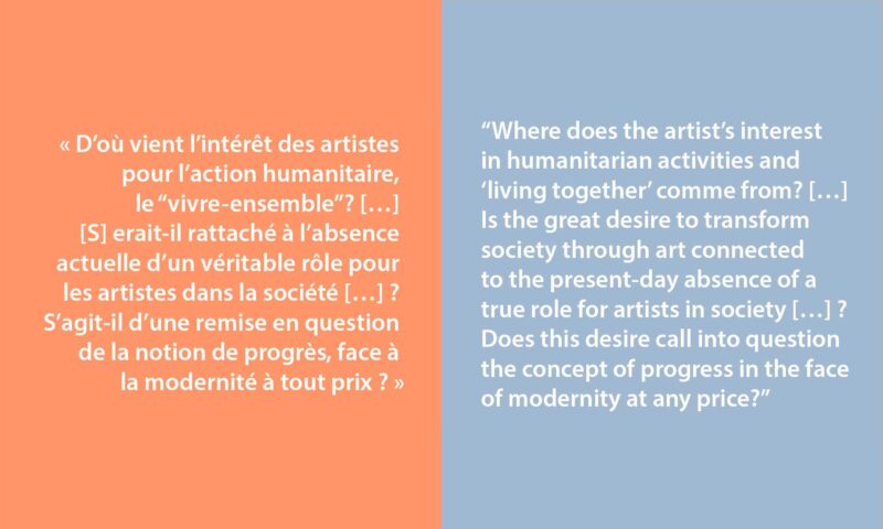 Les résidences d’artistes incluent la réalisation de projets d’art public, documentés et diffusés par le biais de cyberreportages sur notre site Web, par l’édition de textes dans nos publications et la production de vidéos. Précédées d’un séjour de prospection d’une semaine, ces résidences durent généralement un mois et comprennent : cachet de résidence / hébergement / assistance à la recherche de lieux / tournée sur le vif du territoire / appui dans les démarches auprès des communautés locales / espace de travail individuel / aide technique / accès libre à une variété d’équipements de production / documentation visuelle / droits de diffusion et de reproduction. Les membres bénéficient de la location d’ateliers à prix modique.