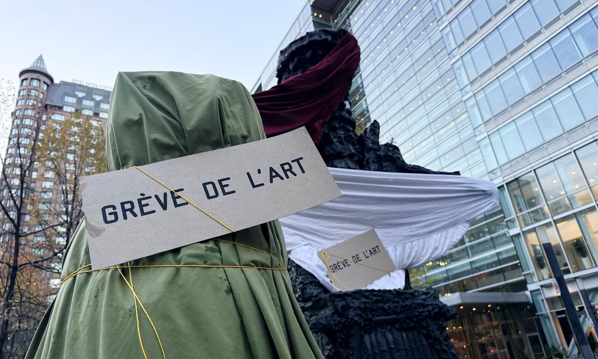 Des artistes québécois ont temporairement recouvert jeudi des œuvres d’art public à Montréal, à Ottawa, à Saguenay et à Alma pour protester contre la trop faible augmentation du budget du Conseil des arts du Canada (CAC) dans le budget fédéral 2025-2026, dévoilé mardi.