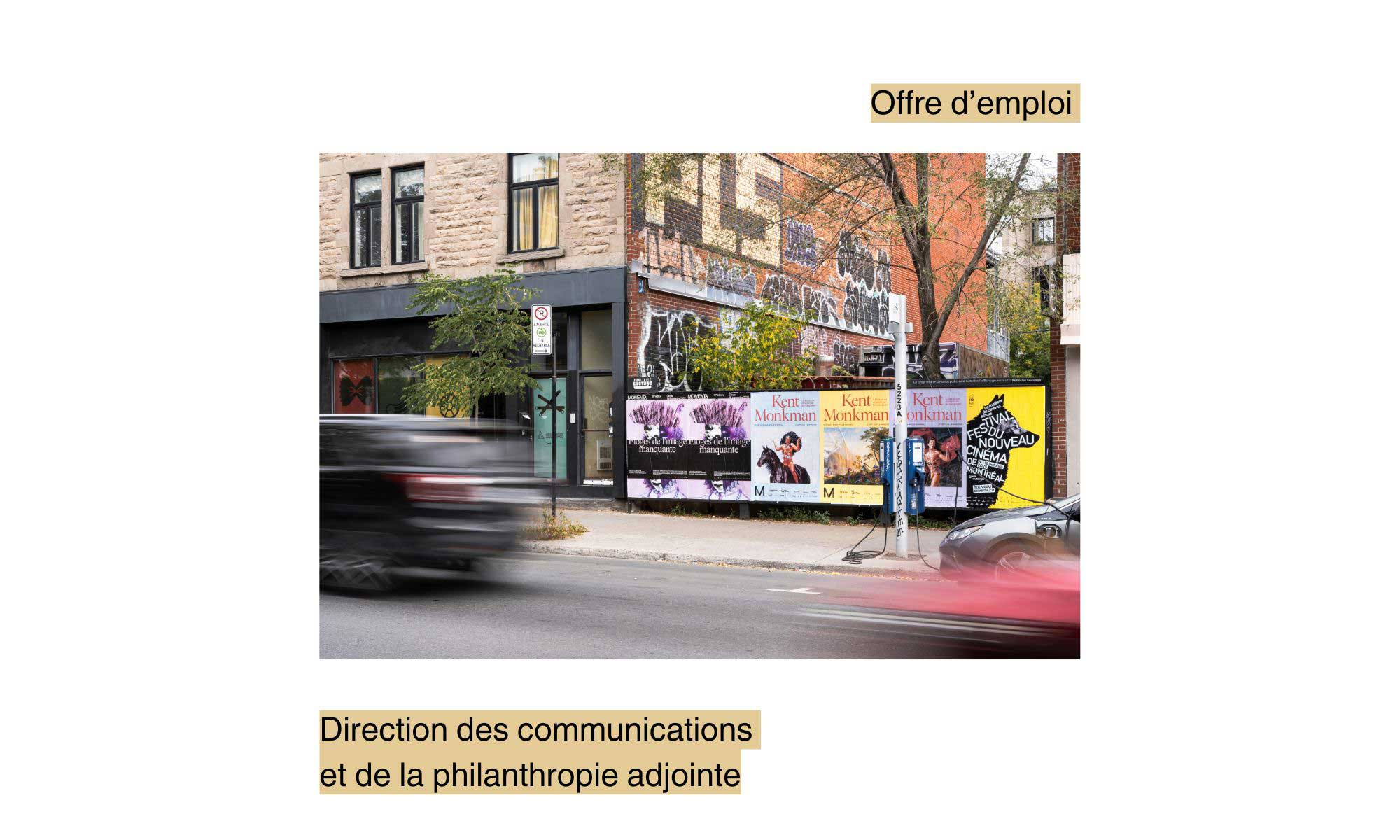 MOMENTA est à la recherche d’une direction des communications et de la philanthropie adjointe. La personne titulaire du poste a pour mandat de soutenir la direction générale dans l’ensemble des activités de l’organisation liées aux communications (relations publiques, promotion et marketing) et à la philanthropie. La direction des communications et de la philanthropie adjointe devra superviser un minimum de 2 employé·e·s l’année de la Biennale et gérer un budget.