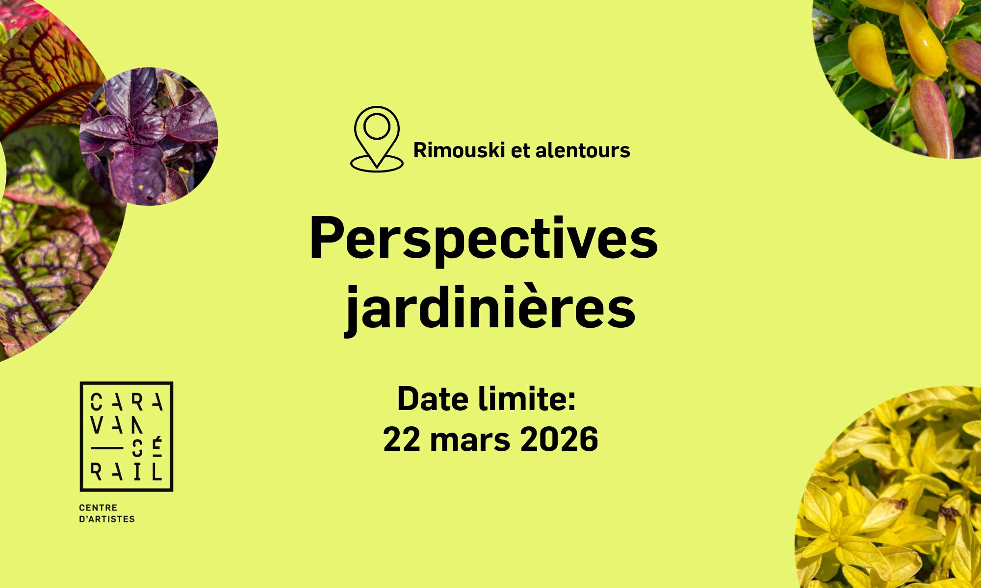 Le Centre d’artistes Caravansérail lance Perspectives jardinières, un appel à projets en arts visuels destiné aux artistes de Rimouski et des environs, pour des interventions artistiques qui prendront place dans son Jardin de quartier durant les étés 2026 et 2027.